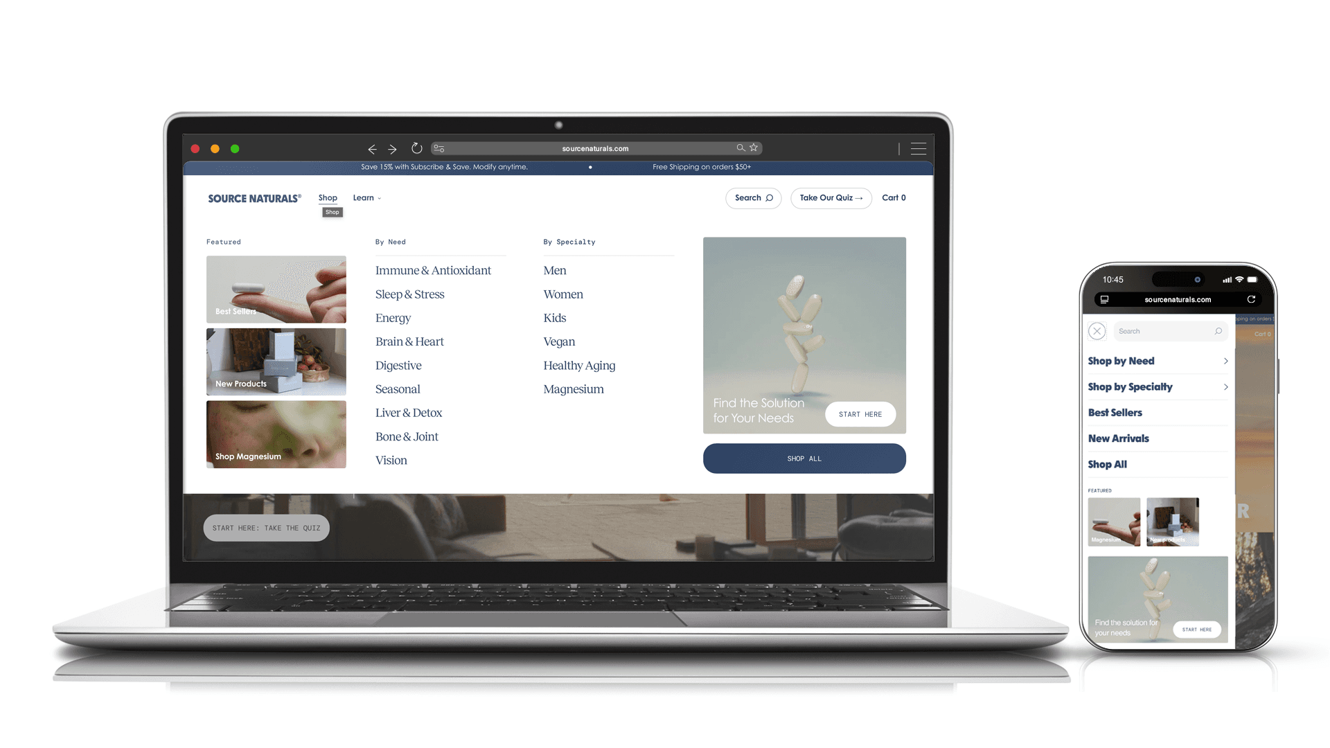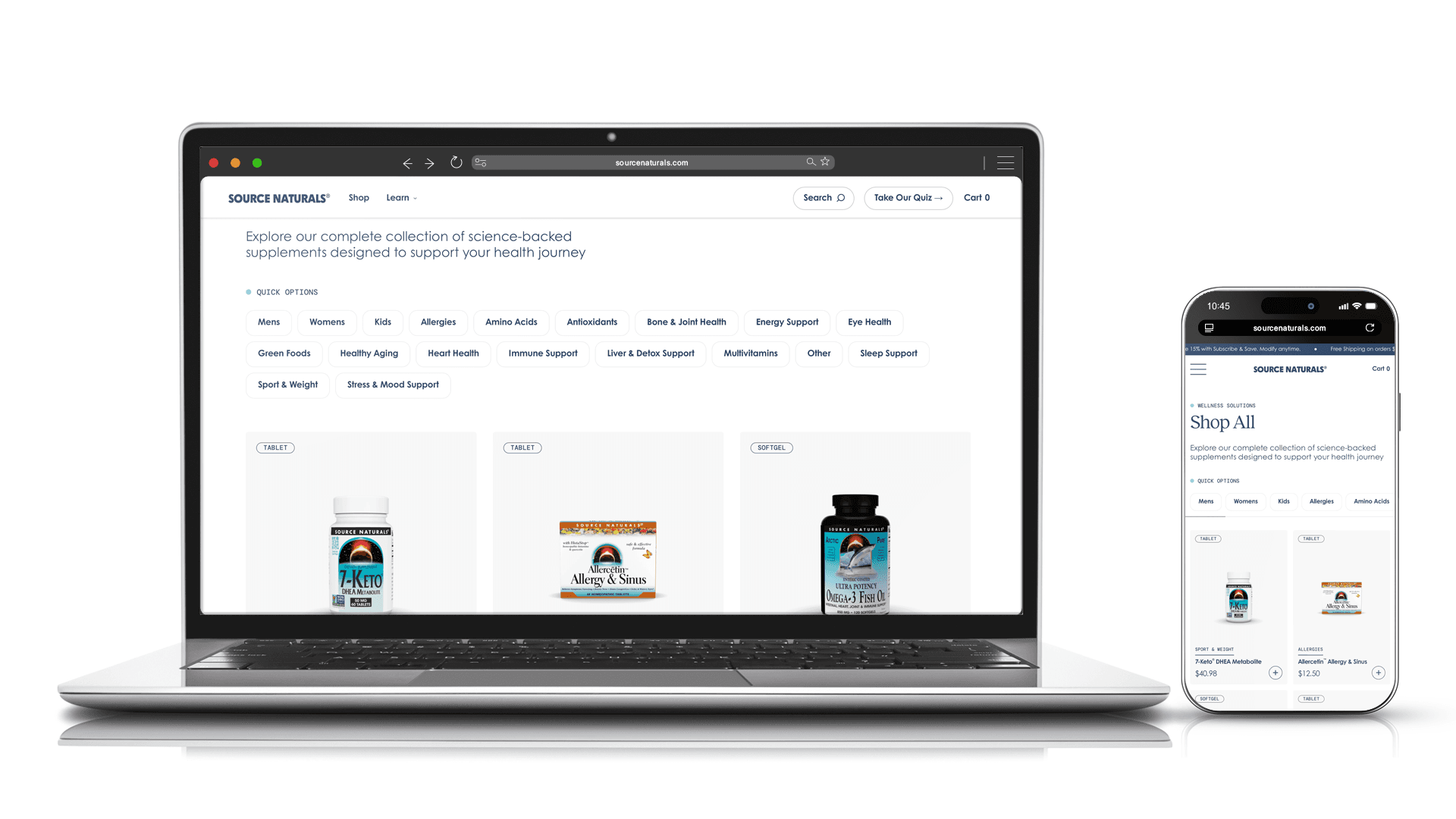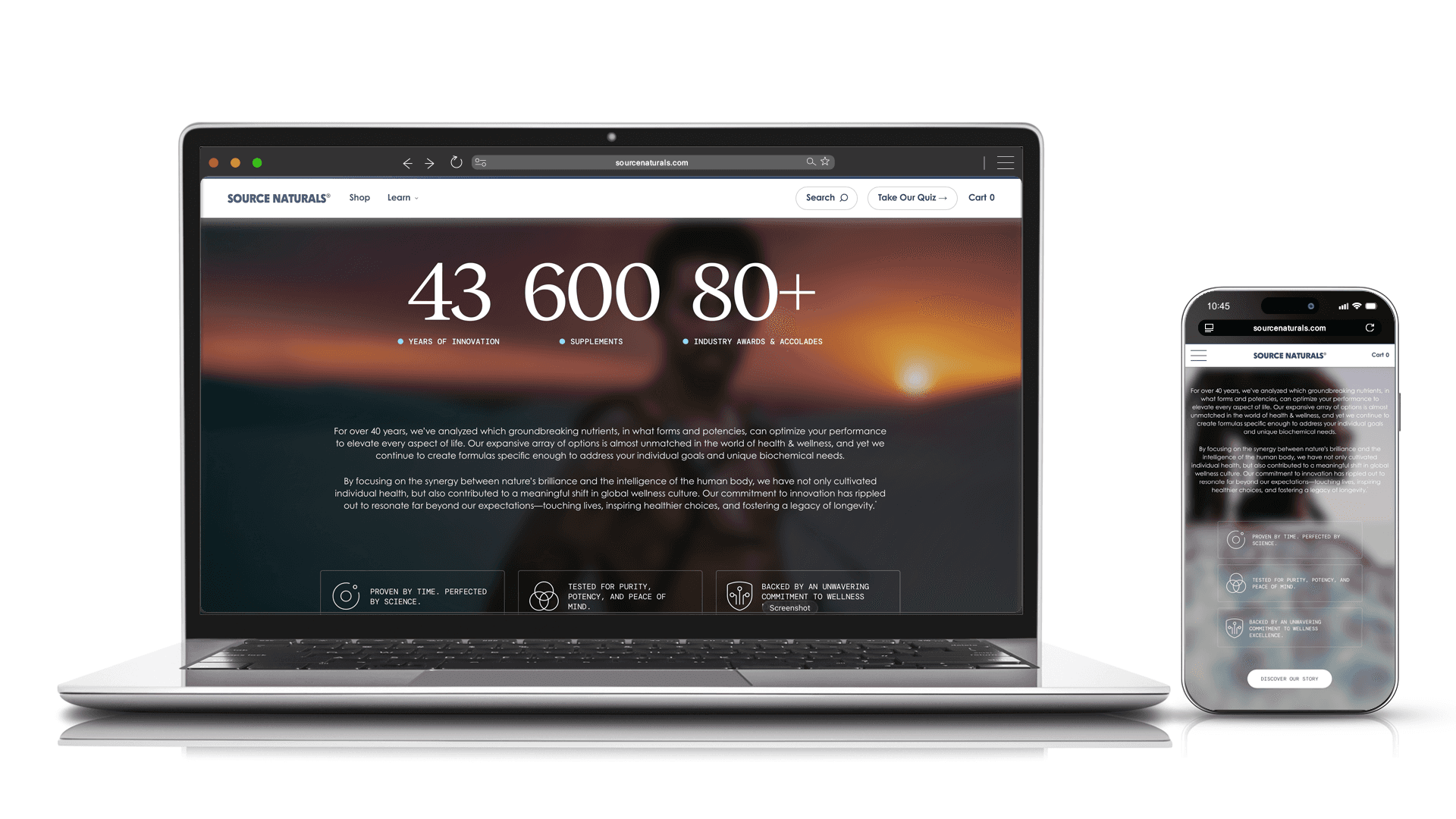 The Source Naturals® D2C relaunch was a comprehensive transformation designed to modernize one of the most trusted names in wellness for a new generation of consumers. As Creative Director, I unified brand storytelling, design systems, and digital infrastructure into a cohesive ecosystem built on insight and performance. The project began with a full audit of the brand’s online presence and user journey, identifying friction points that limited engagement and conversion. We redesigned the Shopify storefront with an elevated, science-forward aesthetic, and simplified navigation to enhance credibility and ease of use.